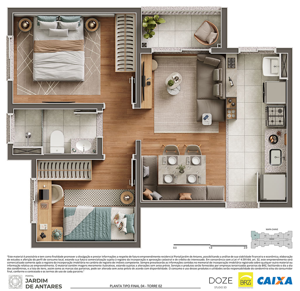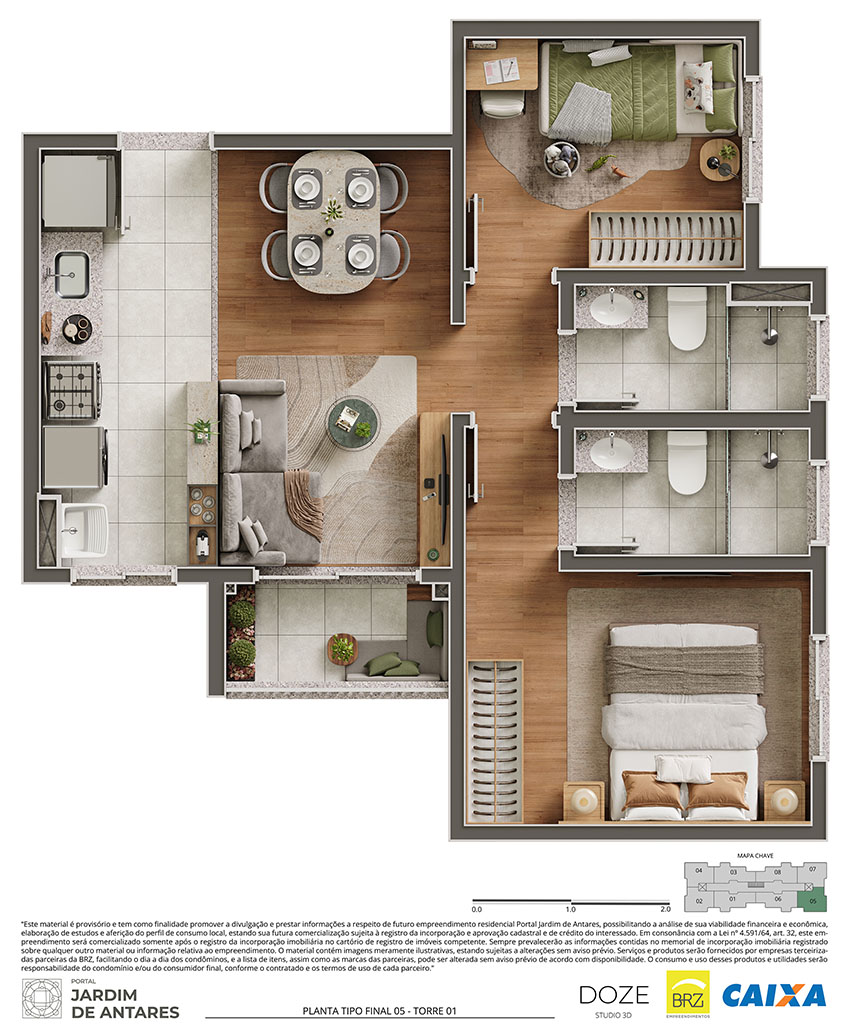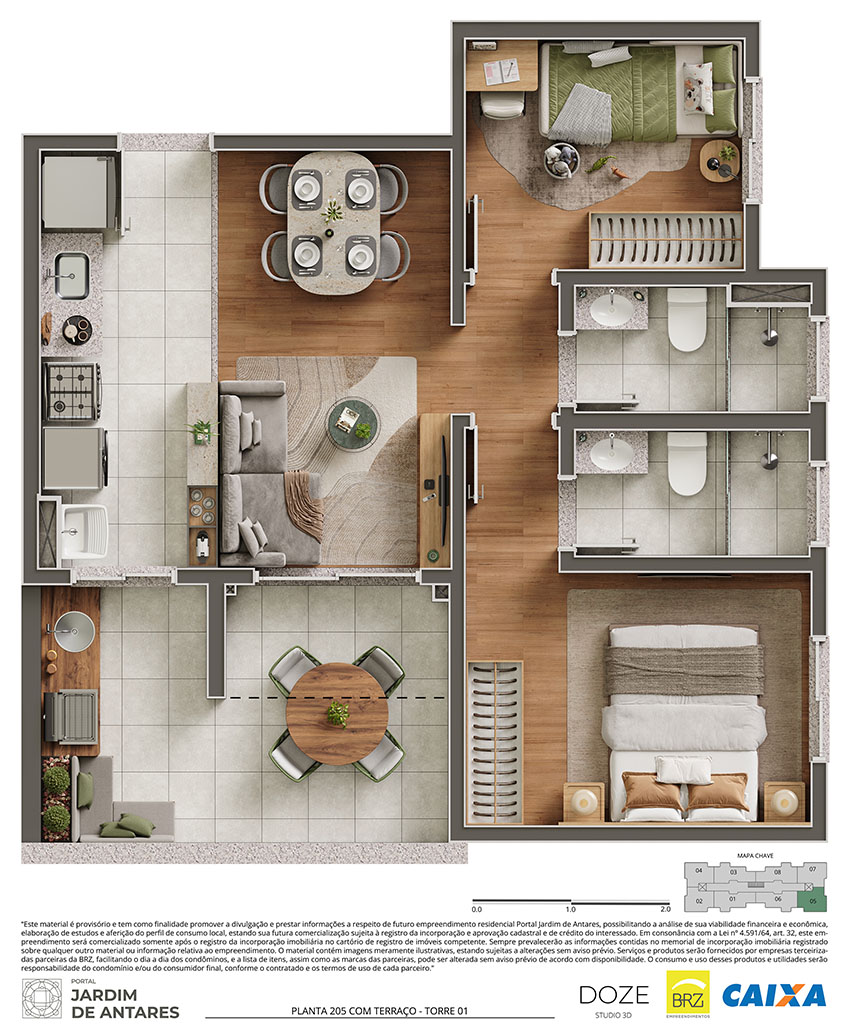 Os itens, equipamentos e serviços retratados neste material serão fornecidos e prestados por empresas terceirizadas, sem vínculo com a construtora. A utilização das utilidades será de exclusiva responsabilidade do condomínio, sendo que as despesas de manutenção e/ou consumo poderão ser rateadas entre os condôminos ou custeadas pelo consumidor final, conforme o serviço/produto contratado.