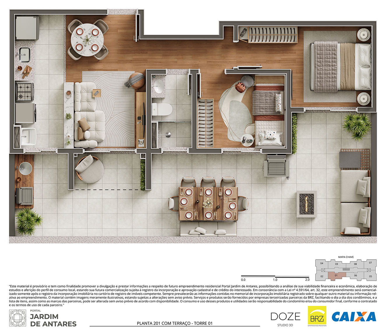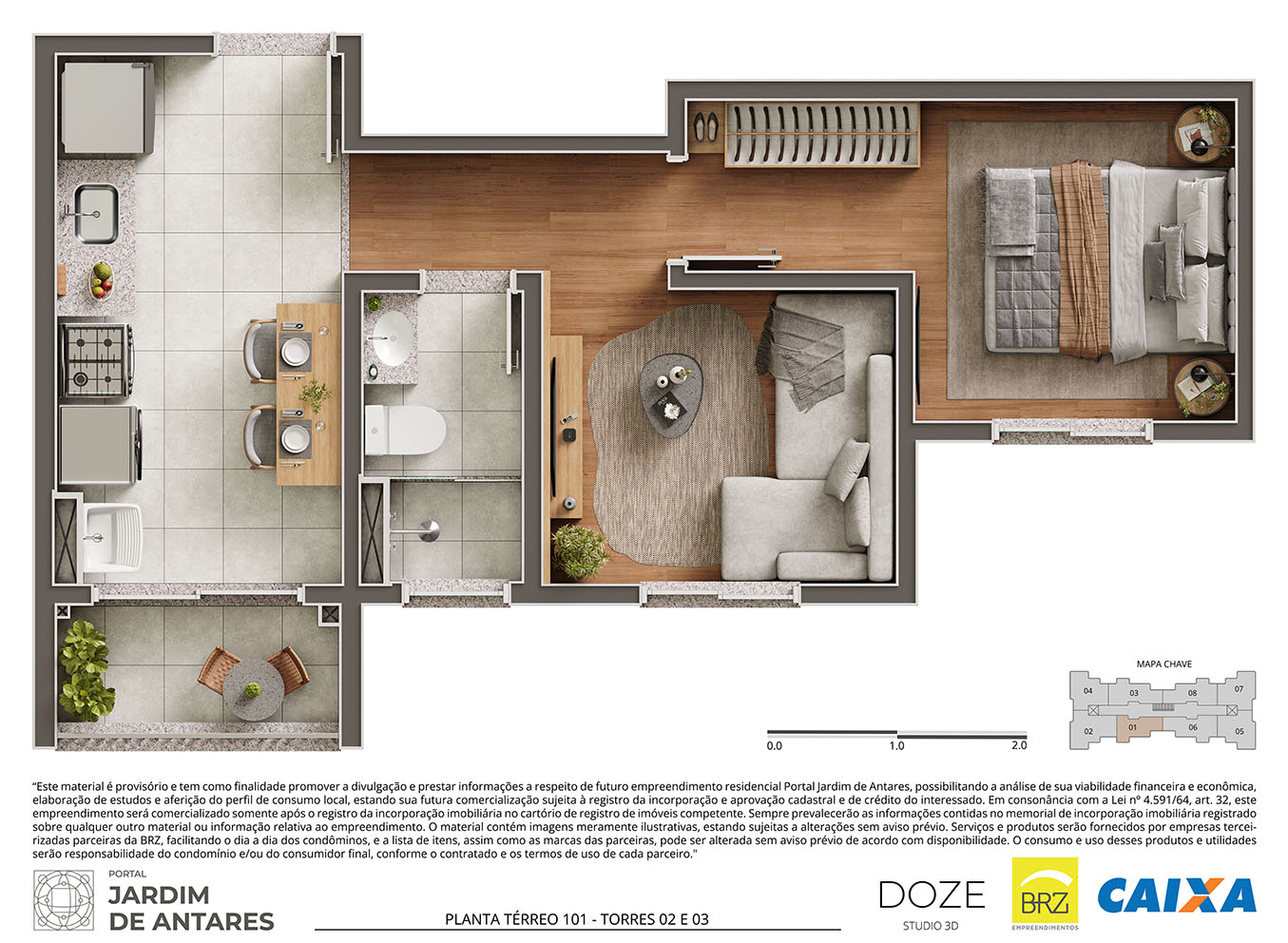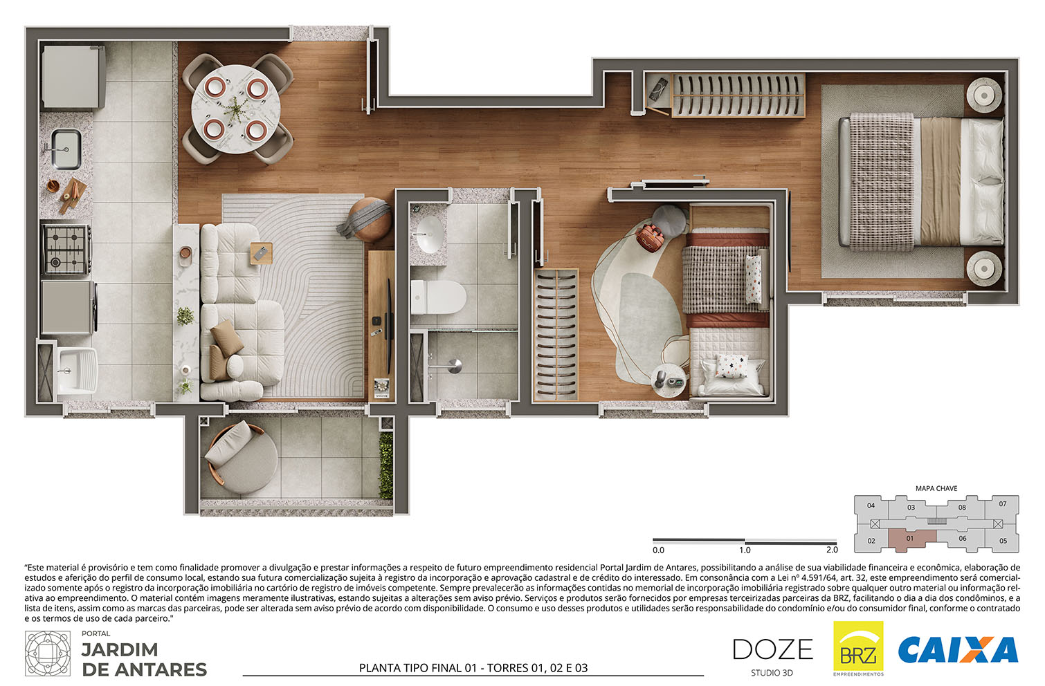 Os itens, equipamentos e serviços retratados neste material serão fornecidos e prestados por empresas terceirizadas, sem vínculo com a construtora. A utilização das utilidades será de exclusiva responsabilidade do condomínio, sendo que as despesas de manutenção e/ou consumo poderão ser rateadas entre os condôminos ou custeadas pelo consumidor final, conforme o serviço/produto contratado.